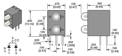 Description: Dual Color LED Array, High Efficiency Red/green, Milky White, T-1, 3mm