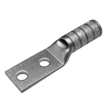 14-10 AWG – 12-10 Sol CU, Two Hole, 1/4 Stud Size, 1 Hole Spacing, Standard Barrel, Inspection Window, Internal Chamfer, Tin Plated, UL/CSA, 90C, Up to 35kV.